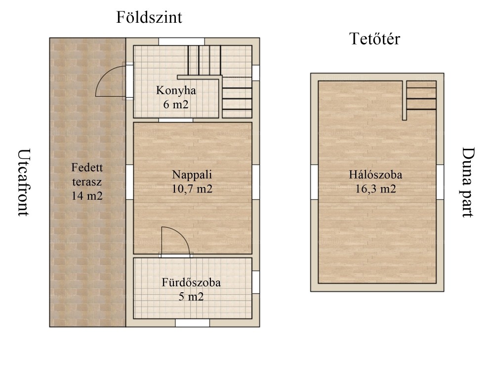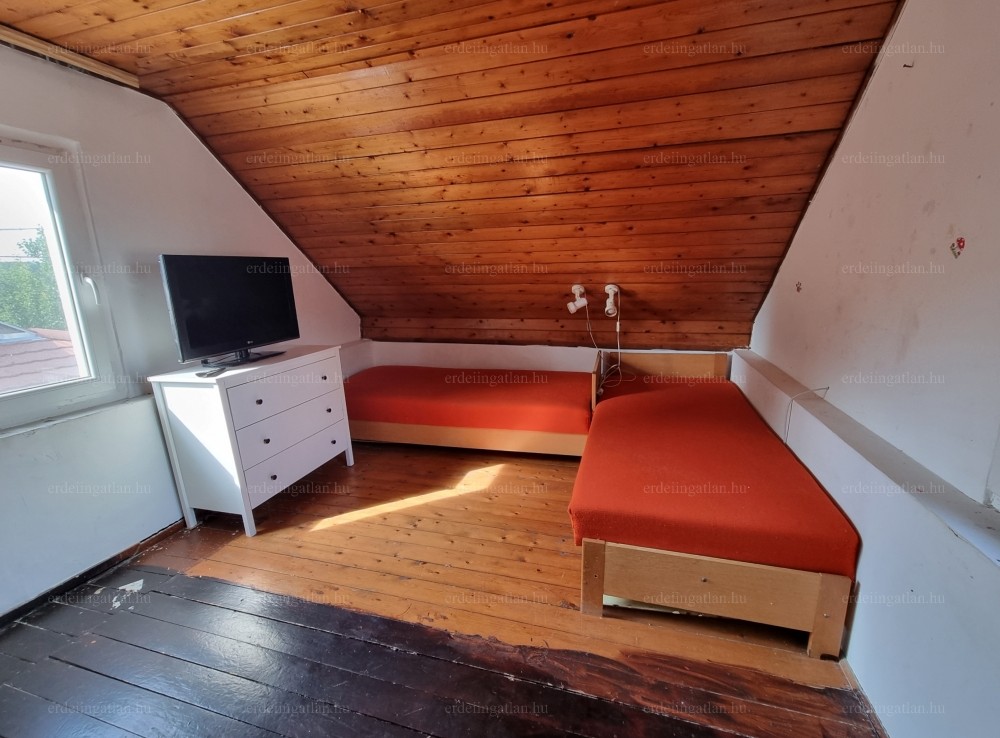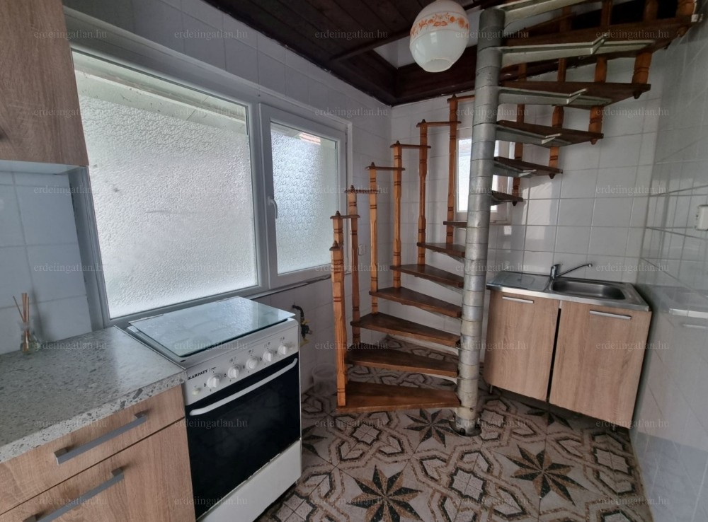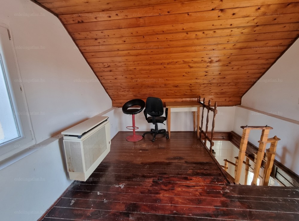 A földszinten egy kis konyha, lépcsőfeljáró, nappali és egy fürdőszoba (WC-vel) került kialakításra, a tetőtérben egy szép tágas hálószoba található.