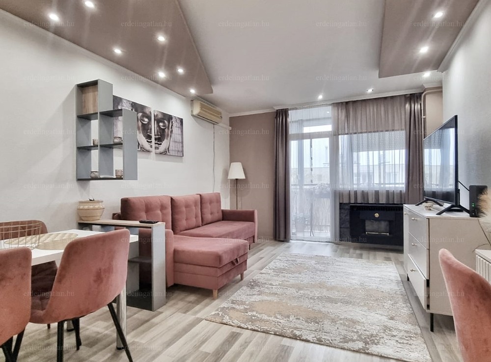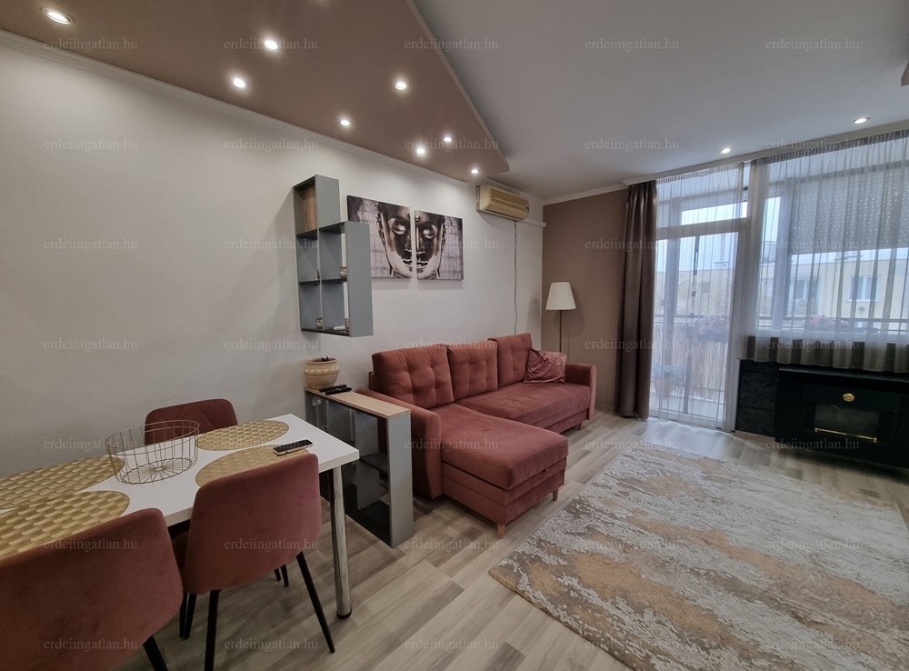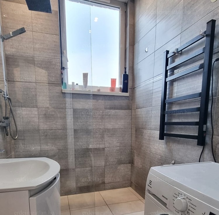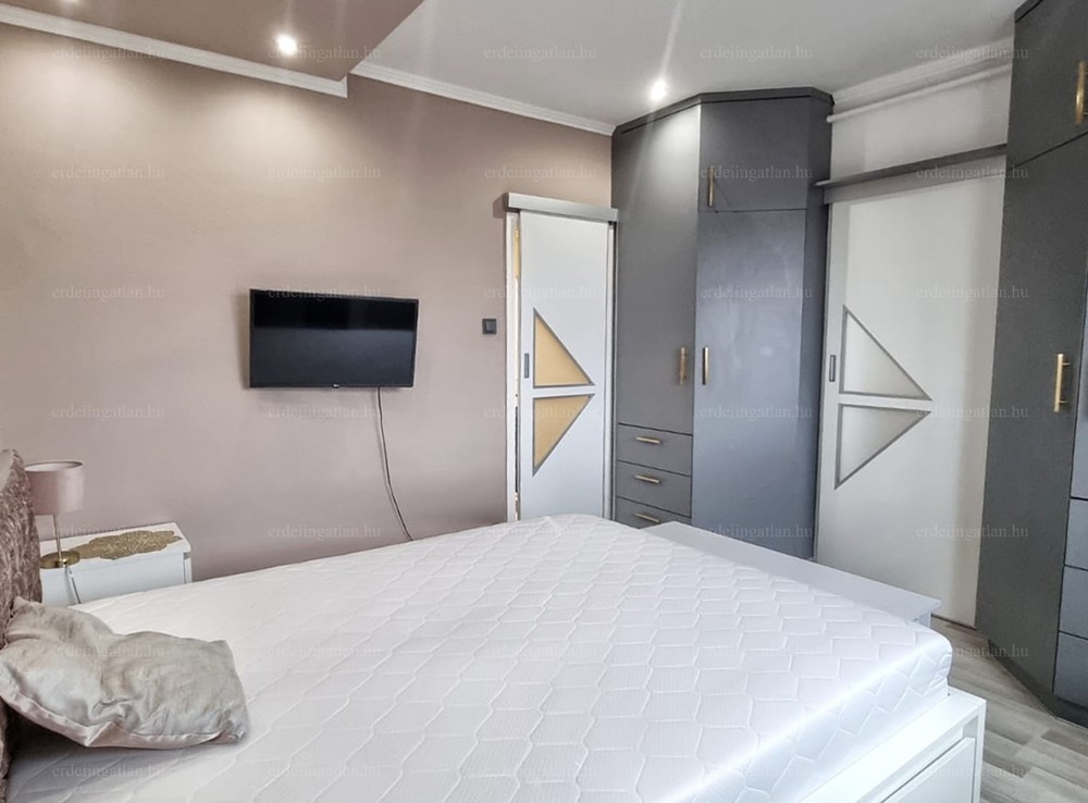 A modern, fiatalos kialakítás, a belső műanyag tolóajtók, a beépített szekrények, a klíma, az ablakos fürdőszoba és konyha gépekkel, mind-mind az odaköltözők életét teszik komfortosabbá, kényelmesebbé. A teljes berendezés a vételár részét képezik.