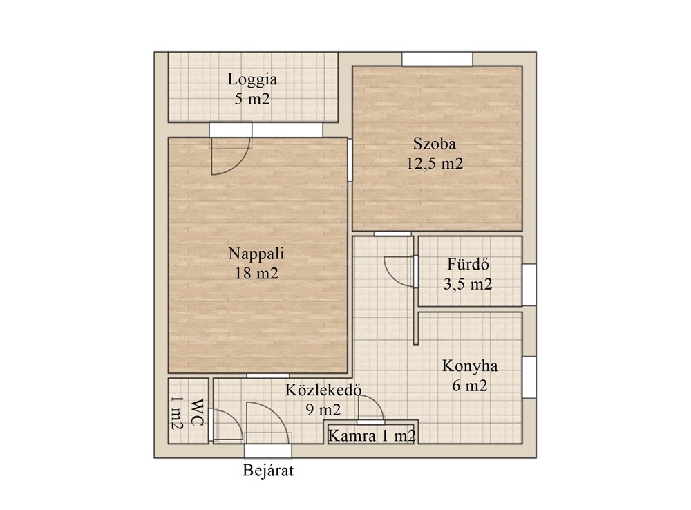 A lakás 51 m²-es elrendezése rendkívül praktikus, kialakítása igényes, fenntartási költsége alacsony. Egy nappali-étkező, egy hálószoba, egy konyha, egy kamra, egy előszoba, egy fürdőszoba és egy külön WC található. A nappalihoz egy 5 m²-es loggia kapcsolódik, melyről szép kilátás nyílik Csepel kertvárosi részére.