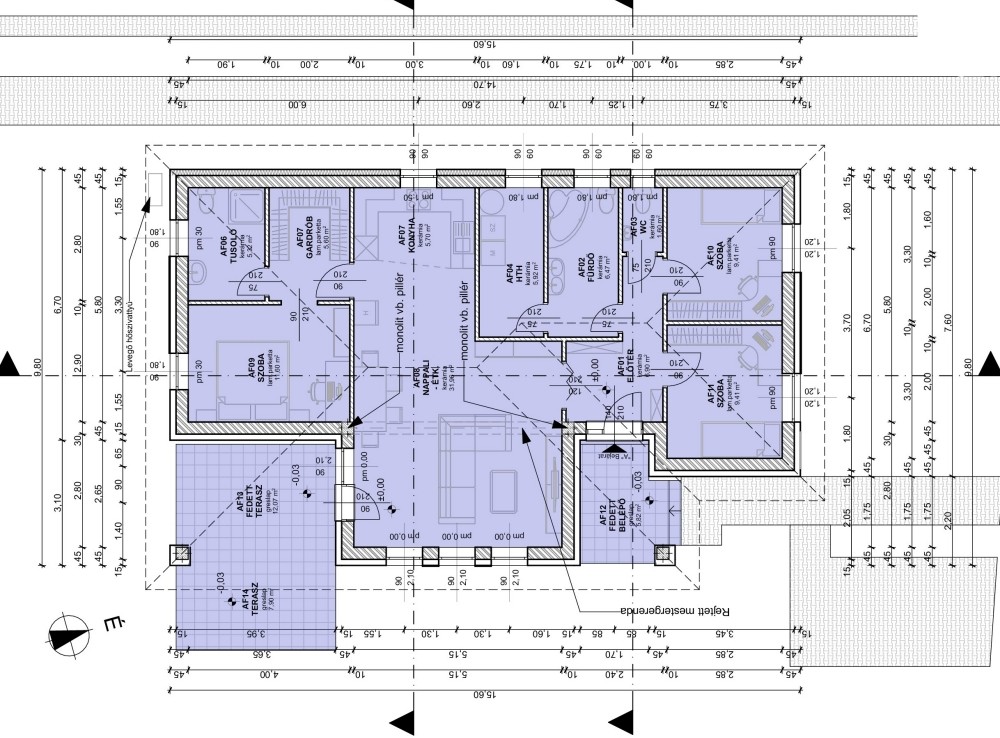 A lakás belső elrendezése rendkívül praktikus és kényelmes. A hálószobák száma 3, az egyik hálószobához fürdőszoba és egy gardróbszoba kapcsolódik. A tágas amerikai konyhás nappaliból egy 20 m2-es fedett teraszra jutunk. A további 2 hálószoba a külön WC helyiség, a háztartási helyiség és a fürdőszoba közelében helyezkedik el.