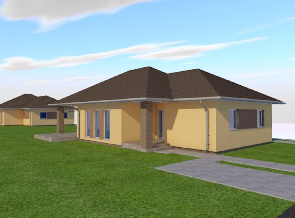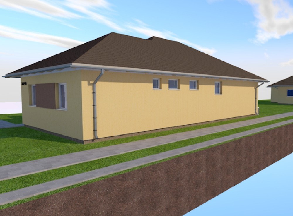 Eladó Kiskunlacházán egy új építésű, nettó 100 m² alapterületű, egyszintes családi ház. (Az alaprajzon az „B” jelű épület)