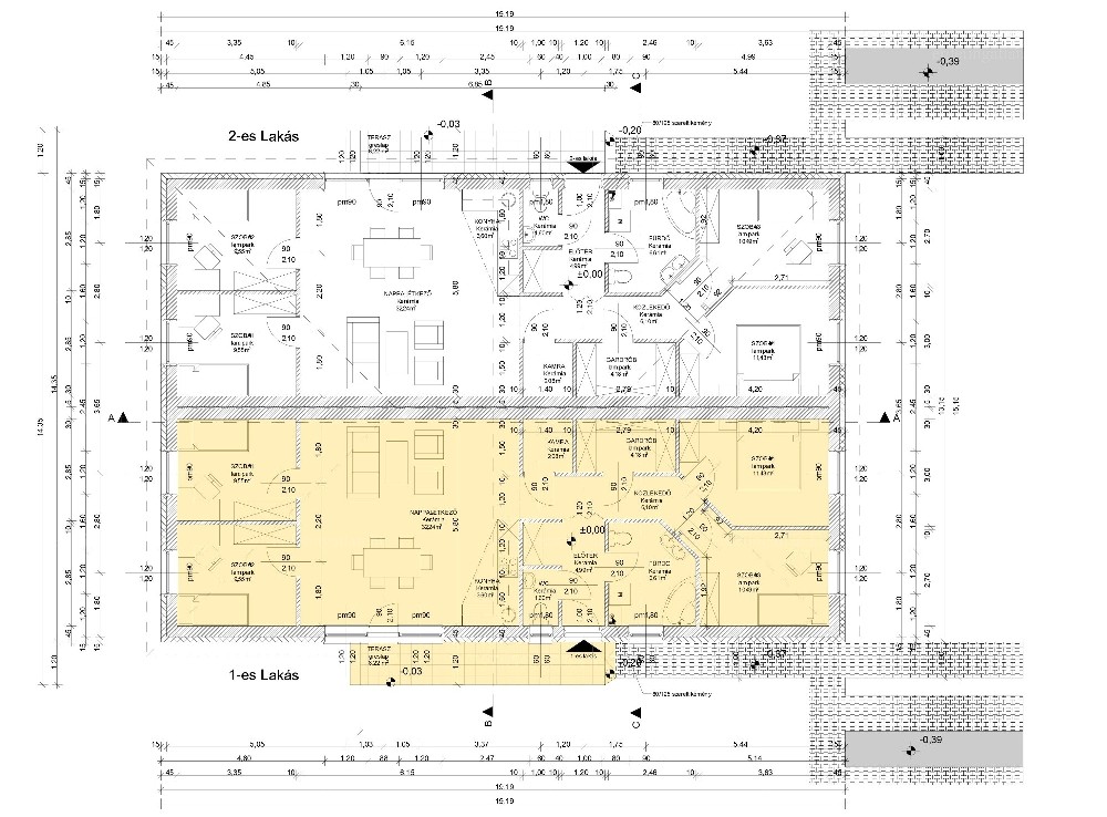 Az épület 30-as téglából, 12 cm-es Grafit Reflex külső hőszigeteléssel, 3 rétegű műanyag nyílászárókkal, antracit betoncserép fedéssel épültek.