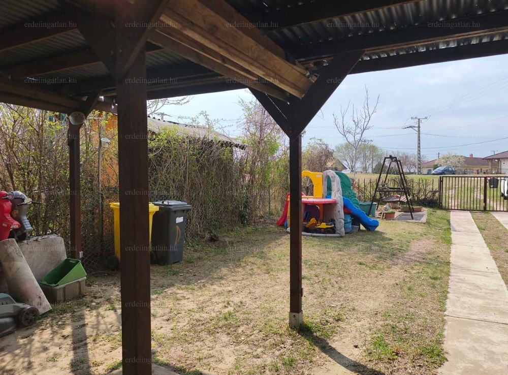 Kert rendezett, 563 m²-es, garázs és a fedett autó beálló is rendelkezésre áll.
