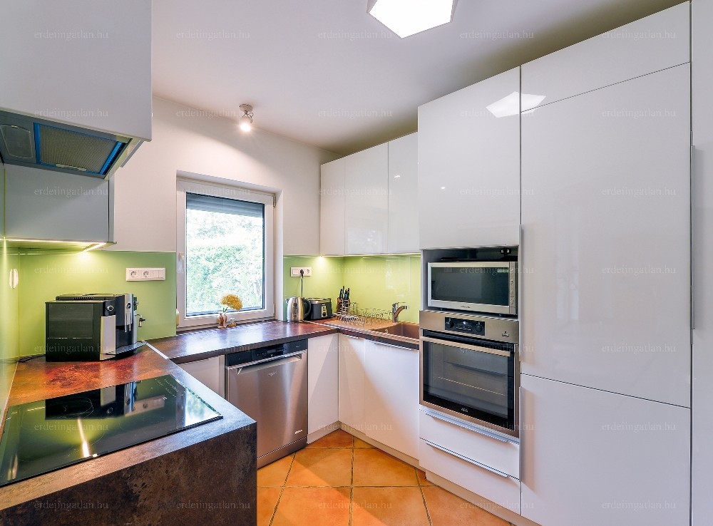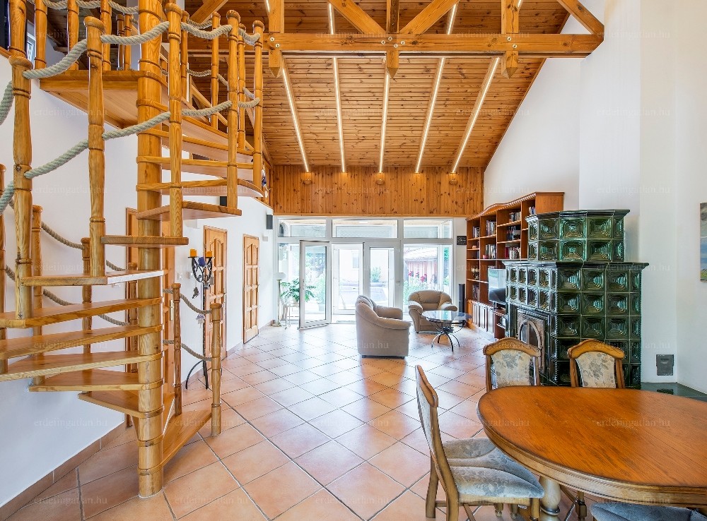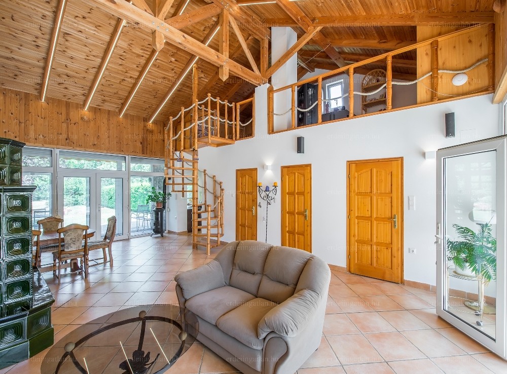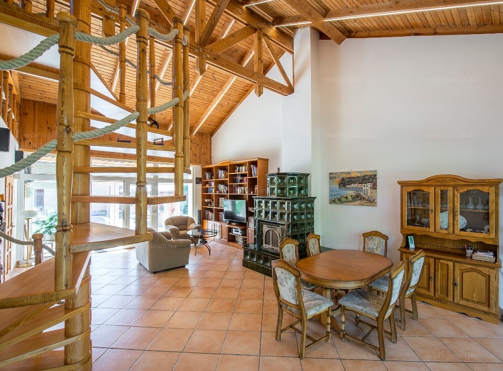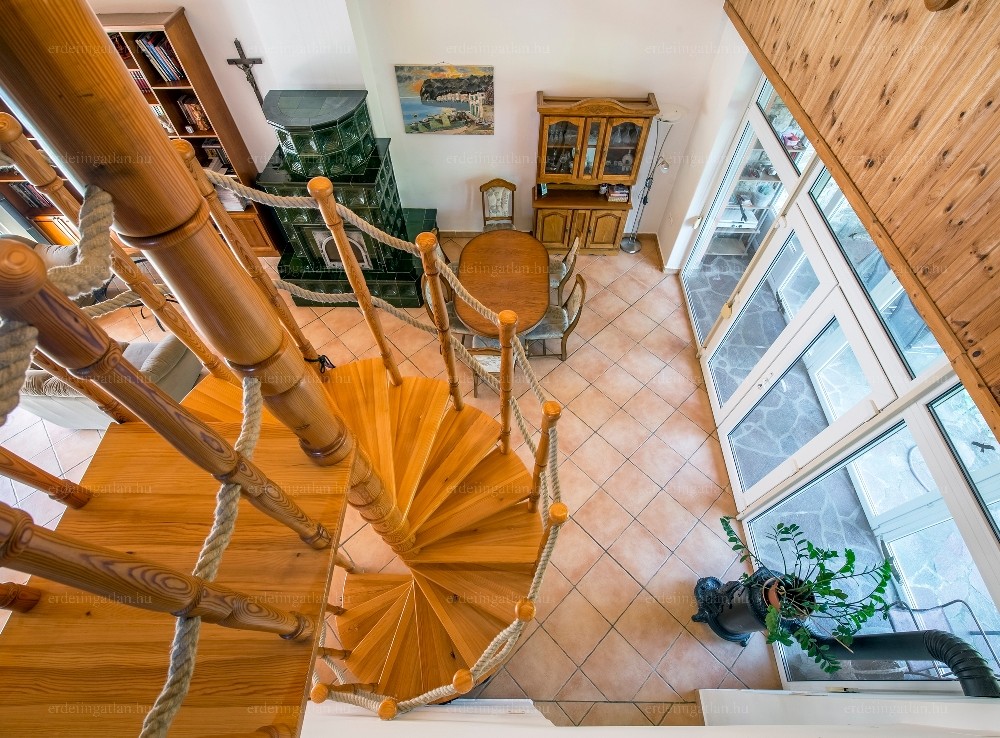 Galériás, világos tágas nappali, hangulatos cserépkályhával, hálóval, fürdő- és külön toalettel. Külön említem, a konyha letisztult eleganciáját.
