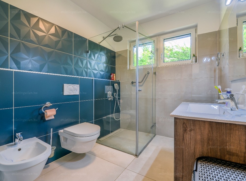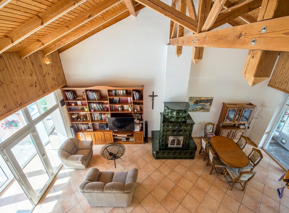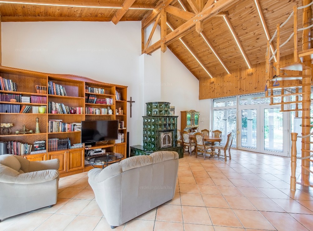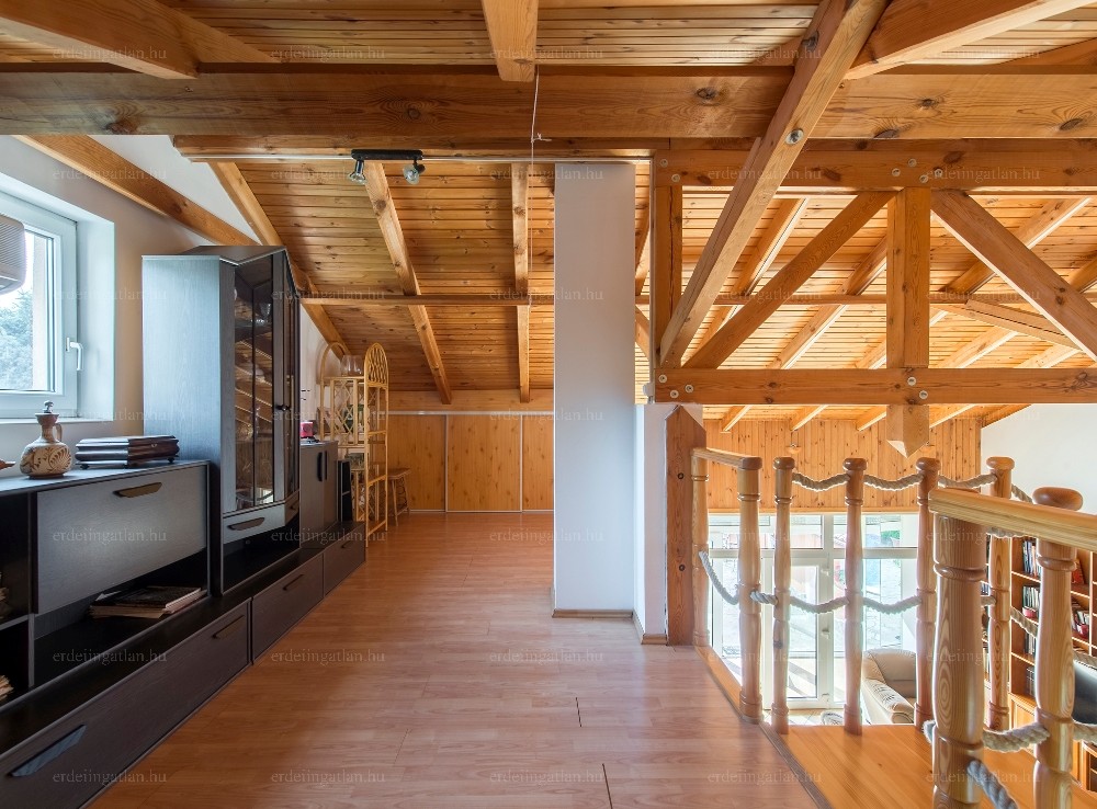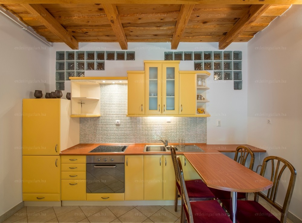 Galériás, világos tágas nappali, hangulatos cserépkályhával, hálóval, fürdő- és külön toalettel. Külön említem, a konyha letisztult eleganciáját.