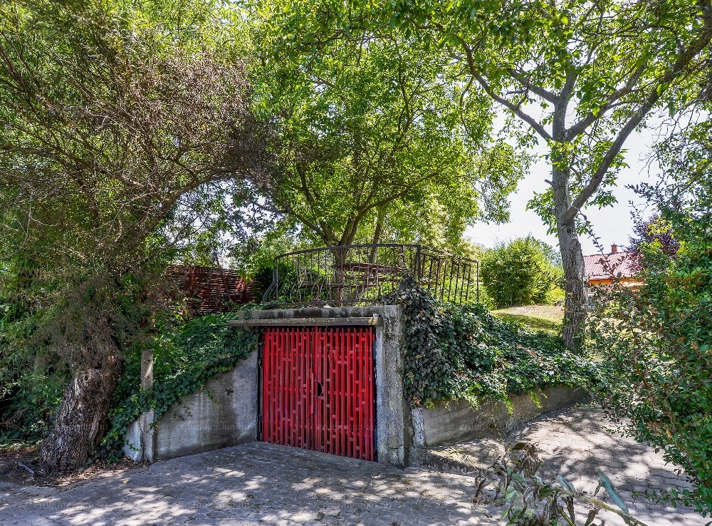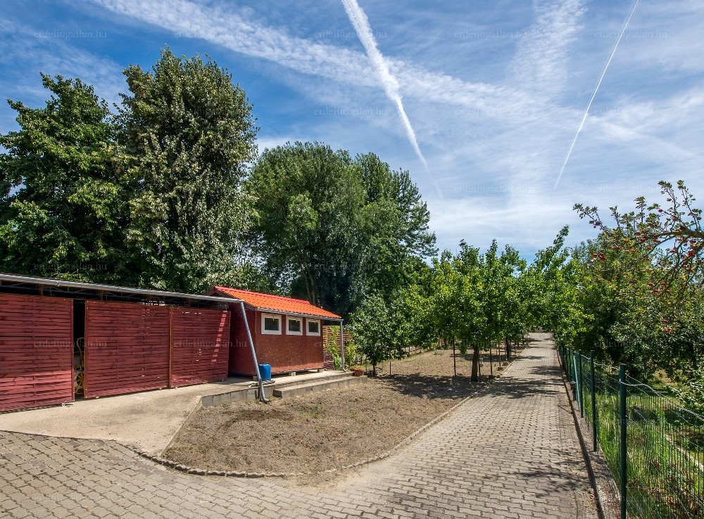Automata bejáratnál, szépen gondozott, termő gyümölcsös kísér az épületig, ahol még külső fás és szerszámos helység kapott helyet.